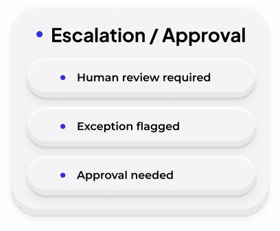 Automations escalate decisions, exceptions, and approvals to the right people.