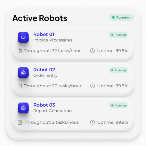 Robotiq is designed to automate real back-office work across legacy systems, desktop applications, and enterprise environments. Securely, reliably, and at scale.